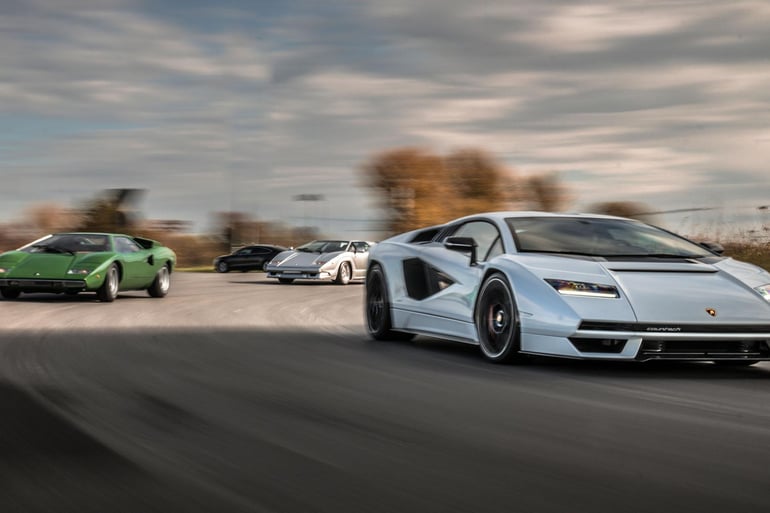 Automobili Lamborghini SpA took their brand new Countach LPI 800-4 on the road for the first time and took two more legends with her, the first Lamborghini LP400 ever made, and the very last one to be made, the silver metallic Countach 25th Anniversary, both borrowed from the Museo Lamborghini,...