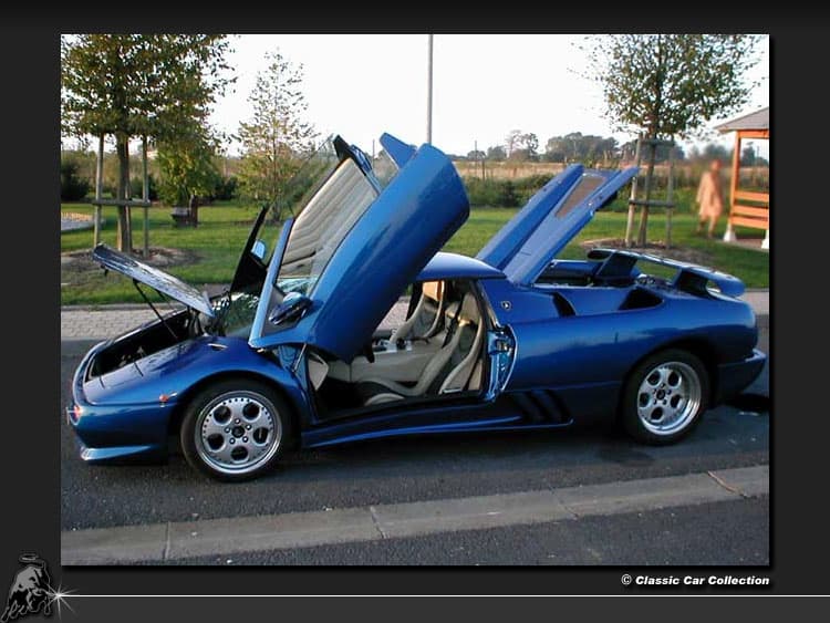 A magnificent dark blue metallic Lamborghini Diablo VT Roadster.Image Copyright:
